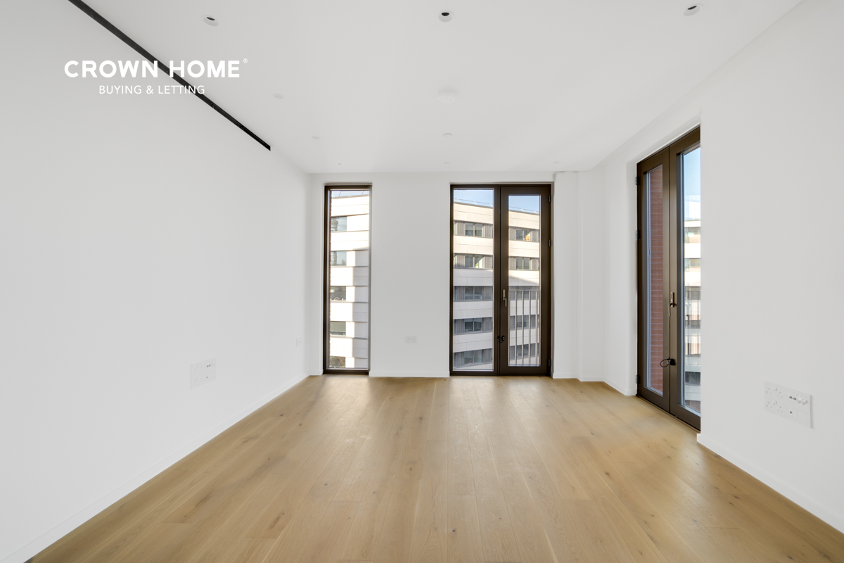 High ceilings and expansive windows really maximise the dimensions, making the living and dining area an ideal spot to relax, rejuvenate and make the most of that all-important leisure time. Meanwhile, a Juliet balcony overlooks a quiet square, a great spot to enjoy at any time of the day or night. A modern, fully fitted kitchen features an abundance of storage, plus an integrated fridge/freezer, a stainless steel sink, an oven, a hob with extractor fan and a dishwasher. A highly functional area, it's easy to navigate no matter what's on the menu and has been effortlessly incorporated into the overall design.