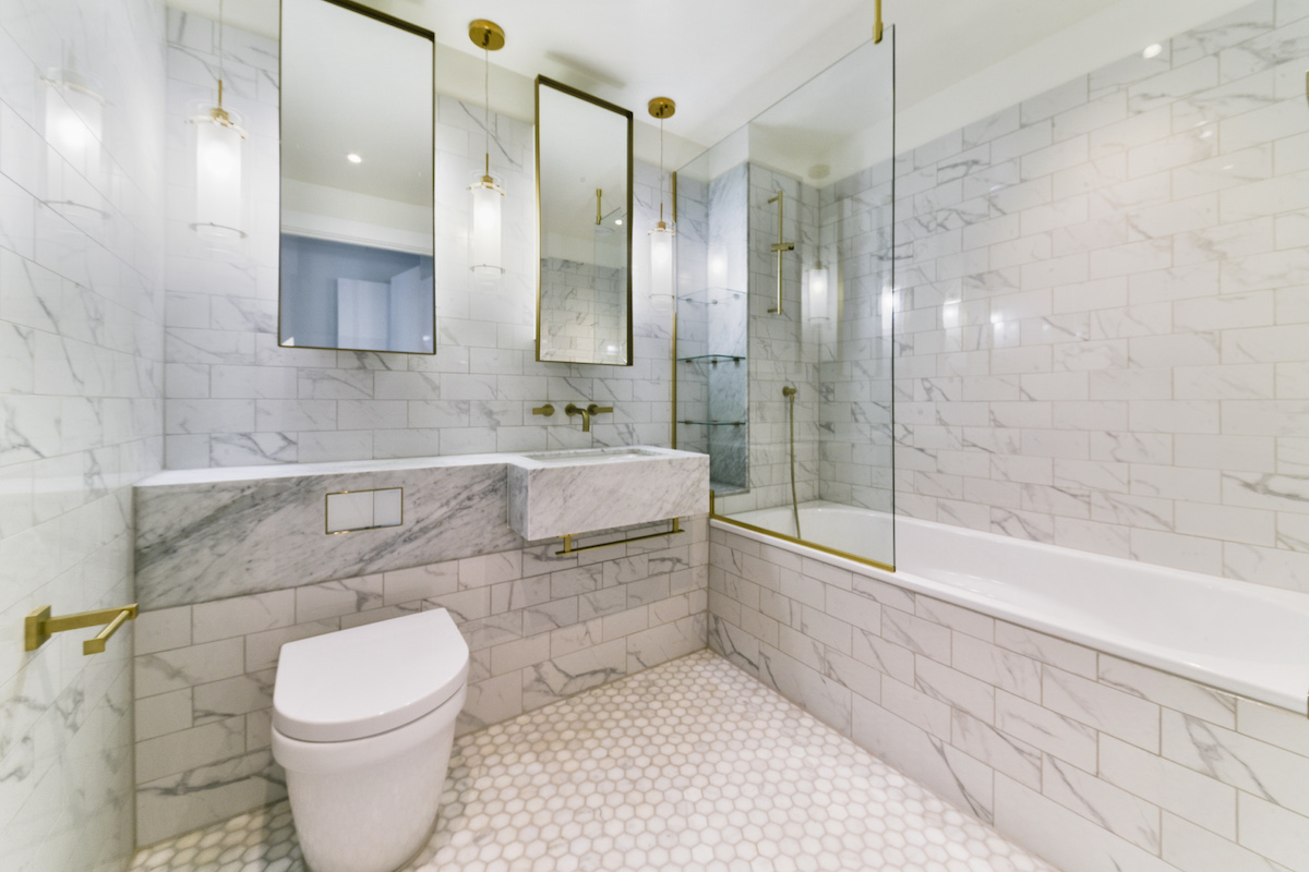 The bedrooms offer a cosy retreat with carpeted floors for restful sleep. The main bedroom features a built-in wardrobe, ensuring a clutter-free space and adding functionality to the luxurious surroundings. The en-suite is impeccably rendered, showcasing a classic tiled finish and a generously sized bathtub. In the hallway, you'll find a well-appointed shower room. Both bathrooms are adorned with mirrored, well-lit units and elegant marble finishes.