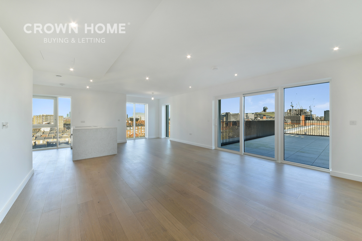 An exquisite three-bedroom apartment within the prestigious Holland House, a gem nestled in the Fulham Reach development, boasting a 1,848 sq. ft. terrace.